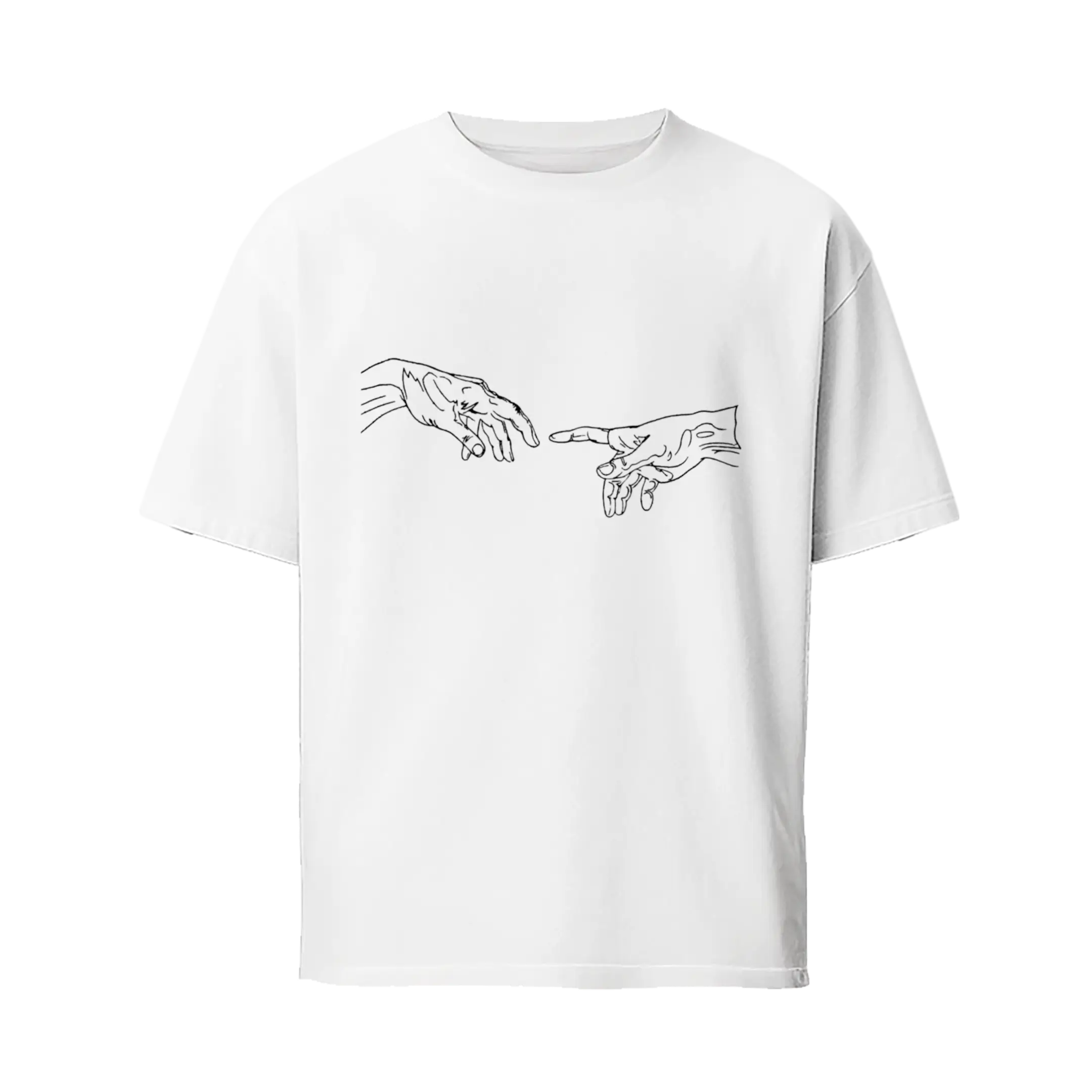 Michelangelo’s Creation of Adam (1512), painted on the Sistine Chapel ceiling, is one of the most famous images in art history. Showing God reaching out to give life to Adam, it symbolizes both divine power and human potential. We tried capturing that iconic moment, bringing Renaissance genius into your everyday style.
